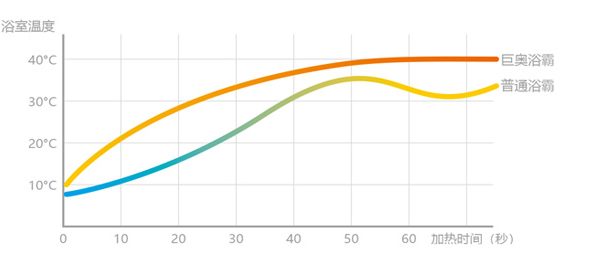 普通浴霸在升溫過(guò)程中易出現(xiàn)上下浮動(dòng),以致在洗浴過(guò)程中人們會(huì)感到忽冷忽熱, 一定程度上大大降低了沐浴體驗(yàn)性。巨奧高制熱量系統(tǒng)設(shè)計(jì),升溫勻速,把控溫度。