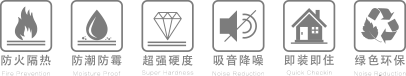綠色環(huán)保 / 吸音降噪 / 防火隔熱 / 快裝快住 / 防潮防霉 / 高平整·強(qiáng)硬度